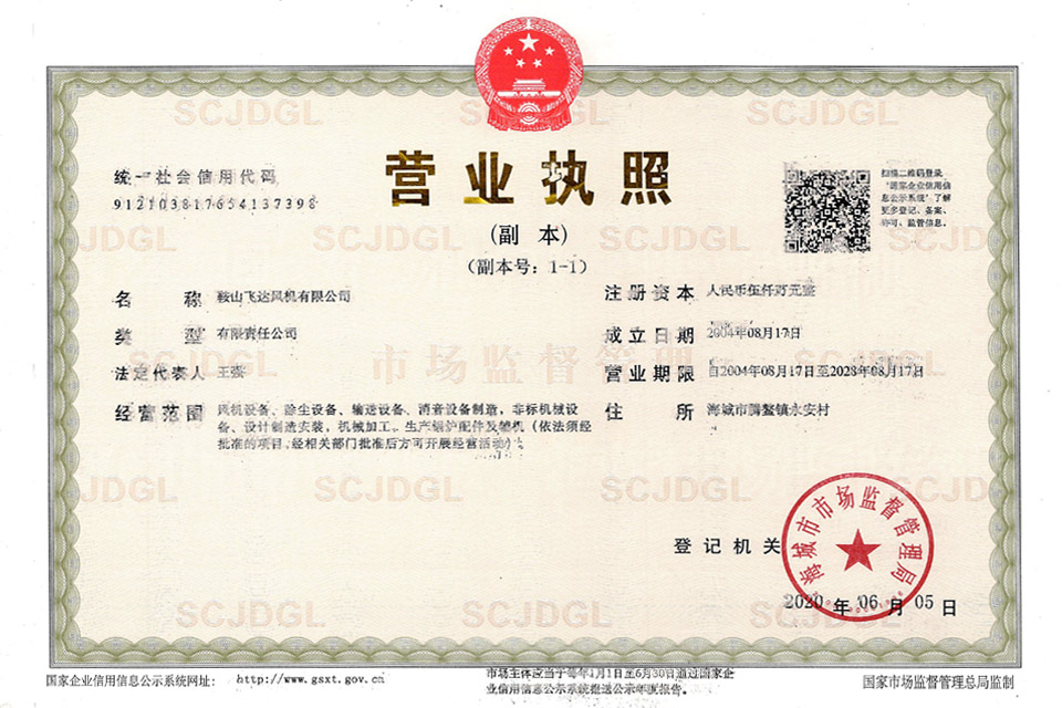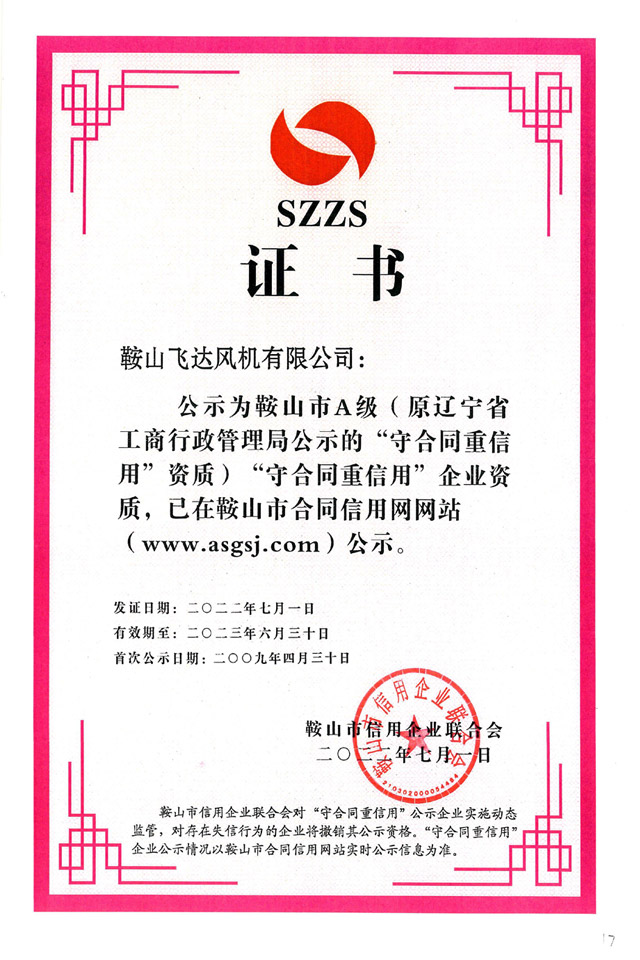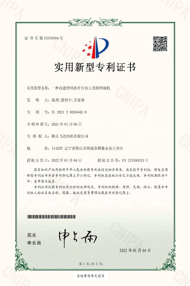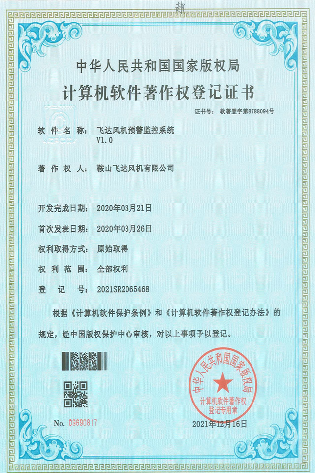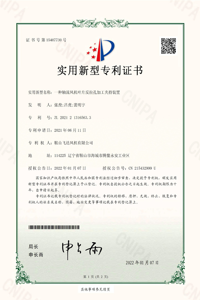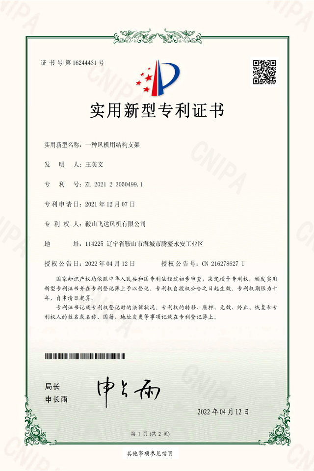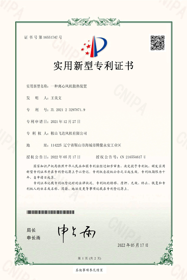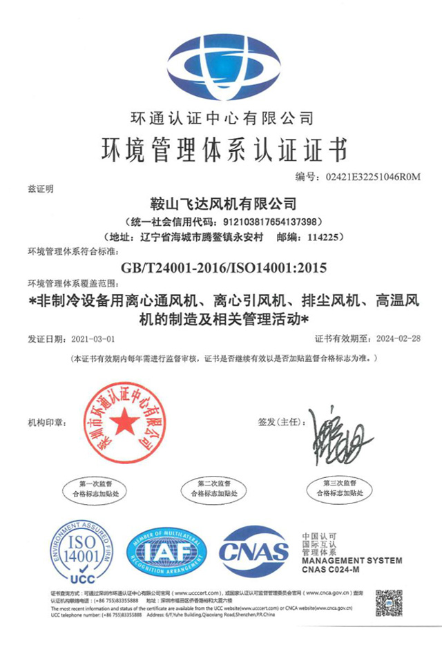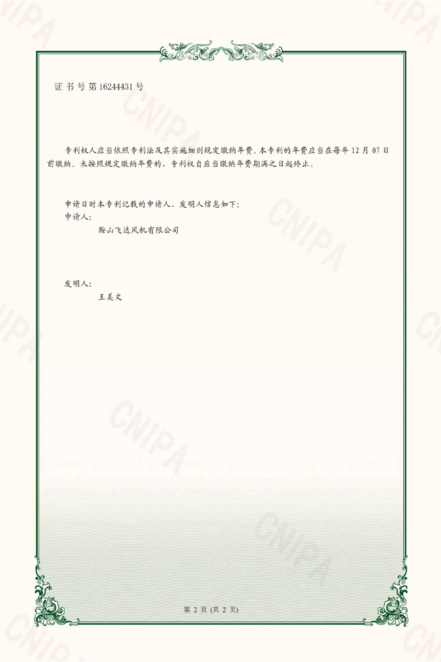 飛達(dá)風(fēng)機(jī)產(chǎn)品通過3C認(rèn)證、CE認(rèn)證,工程風(fēng)機(jī)通過消防鑒定,并取得了ISO9001:2000國際質(zhì)量體系認(rèn)證。